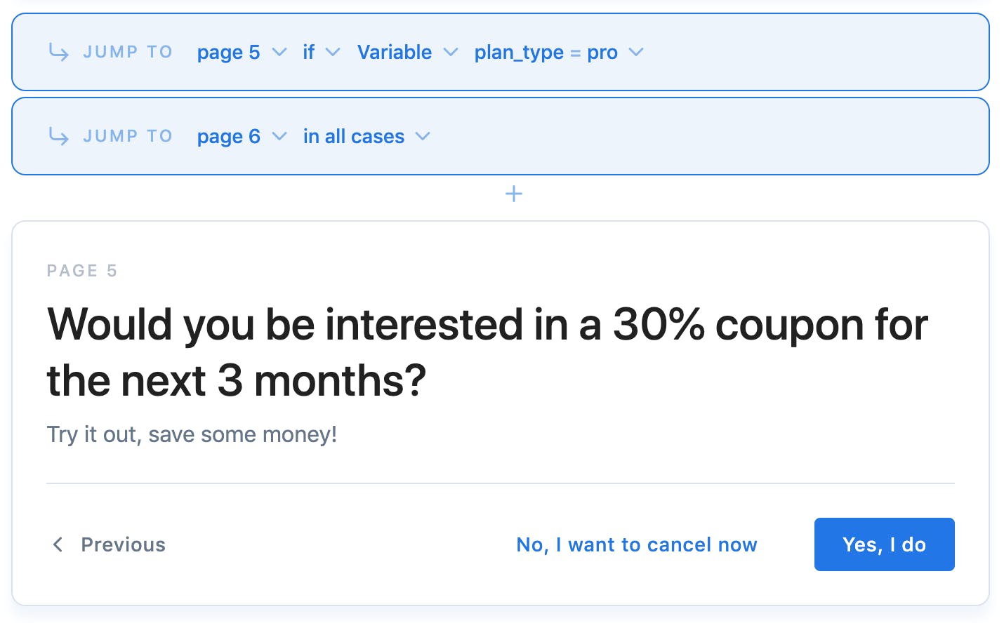 You can define logical jumps to display pages only when your customers respond to certain answers. The rules are as follow: