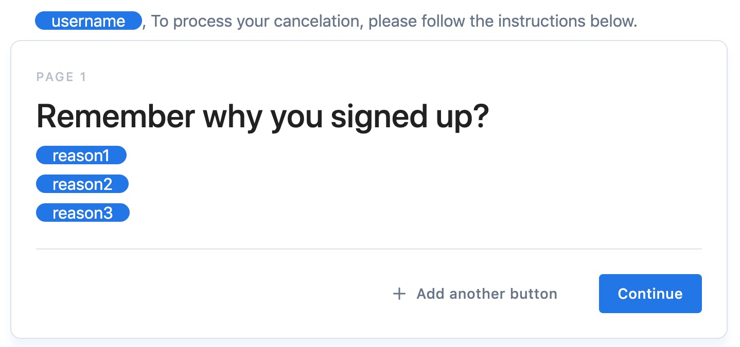 When creating an cancel session, you can pass variables. You can use them in 3 different ways